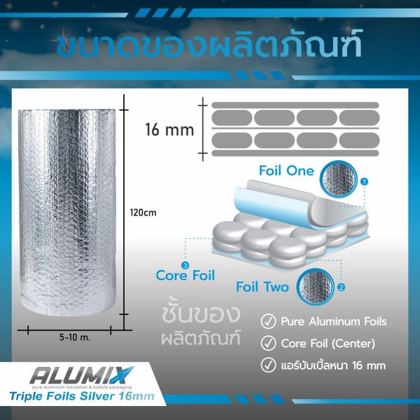 Alumix Silver 16 mm ฉนวนฟอยล์อลูมินั่มแท้บริสุทธิ์ 97% สะท้อนแสง 2 ด้าน