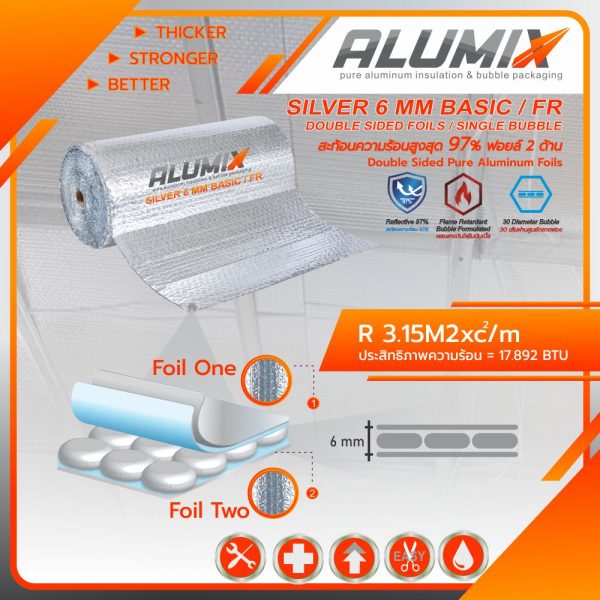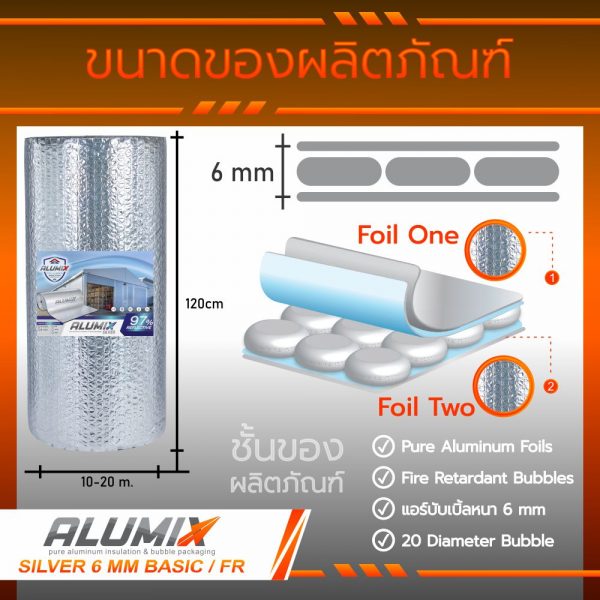 Alumix Silver 6 mm ฉนวนฟอยล์อลูมินั่มแท้บริสุทธิ์ 97% สะท้อนแสง 2 ด้าน